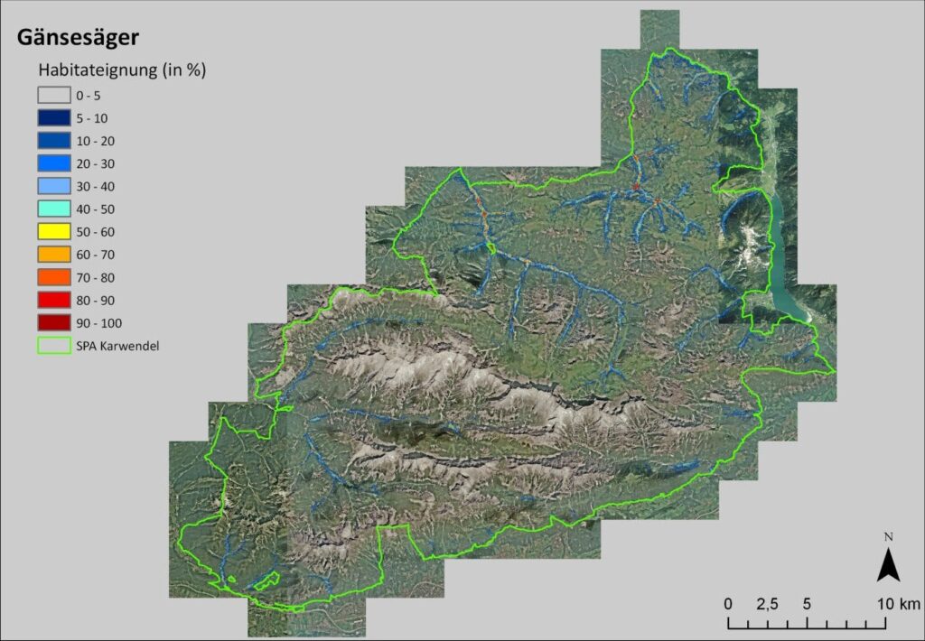 Der Gänsesäger kommt ausschließlich im Achen-, Bächen- und Risstal vor.
