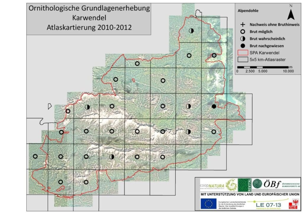 Geschätzter Bestand im SPA Karwendel: (500) 1.100-1.200 (1.700) Reviere, möglicherweise deutlich geringer