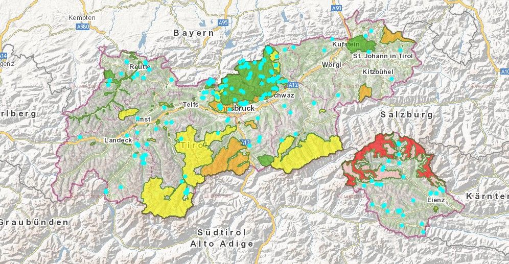 - Datengrundlage: Mehrjährige, ornithologische Grundlagenerhebung zu den Vögeln im Natura2000- und Vogelschutzgebiet Karwendel (4 Punkte)