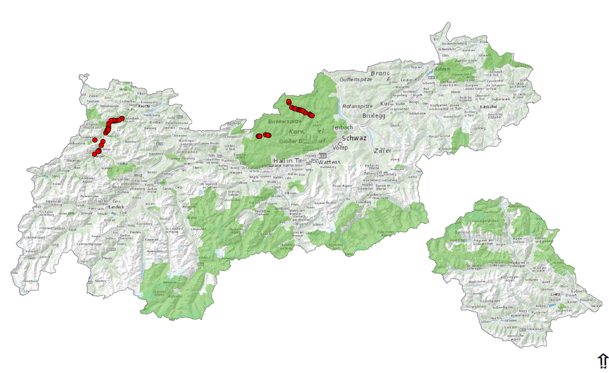 - Regionale Relevanz: Tirol ist mit 63 % der rezenten Nachweise das bedeutendste gegenwärtige Verbreitungsgebiet der Art in Österreich (4 Punkte)