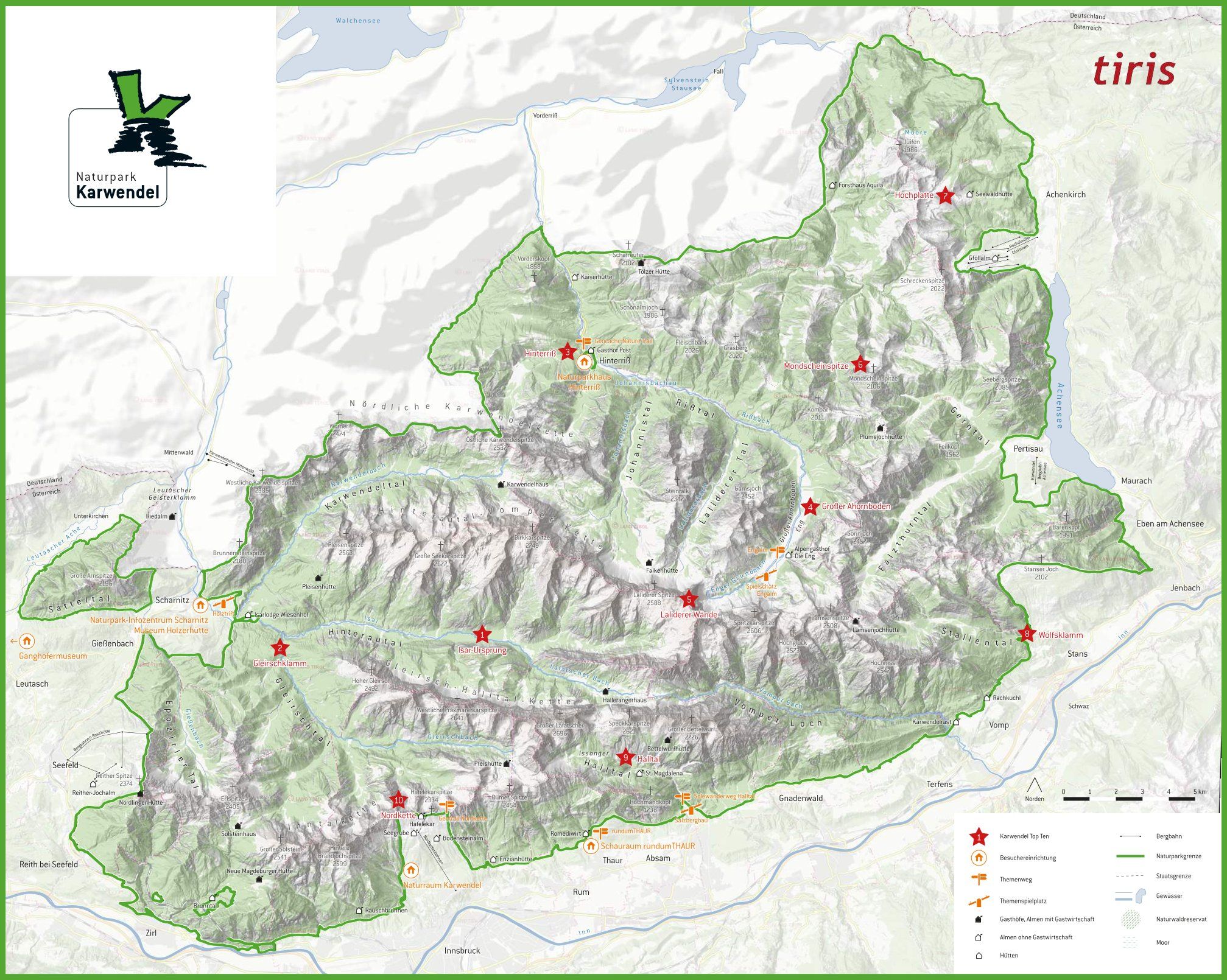 Ausführliche Beschreibungen zu den insgesamt 12 Schutzgebieten, die den Naturpark Karwendel aufbauen.