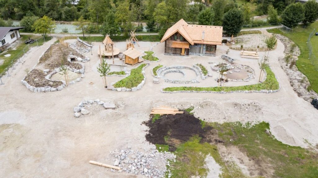 An der Planung des Außengeländes war die Volksschule Scharnitz maßgeblich beteiligt, auch die Umsetzung ist in weiten Stücken mit Freiwilligen erfolgt.