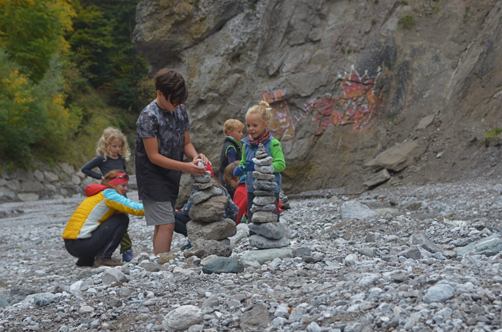 Statt eines festen Lehrplans wählen die Kinder Bausteine nach Interesse oder Empfehlung aus. Dabei lernen sie spielerisch spannende Aspekte über Wald, Wasser, Gebirge und die Entstehung des Karwendels. Spaß und Abenteuer stehen dabei im Vordergrund!