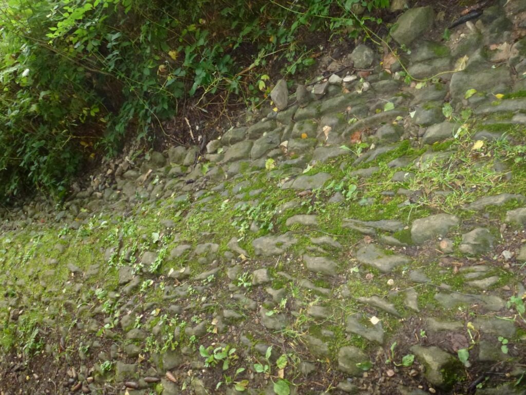 An den entsprechenden Engstellen finden sich auch rechtwinklige Kanten in den Fels gehauen, die als Widerlager für die Klausenwände dienten.